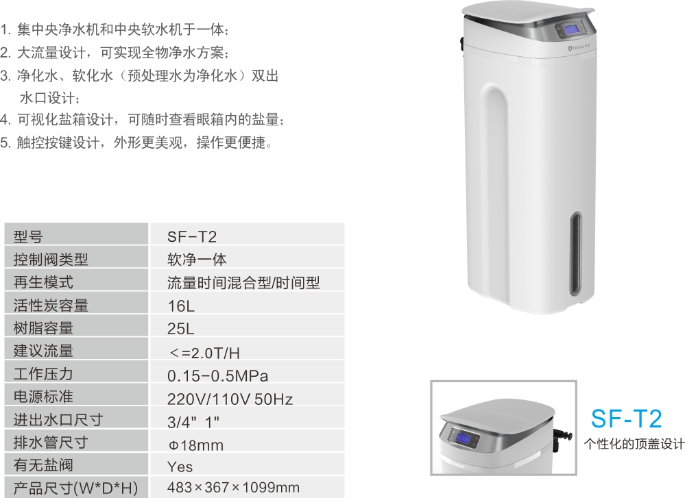 集中曲净水机和中央软水机于一体;大流量设计,可实现全物净水方案